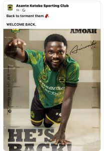 For Asante Kotoko, the return strengthens squad depth at a critical time. For Albert Amoah, it represents a second chance to shine in one of Ghana’s biggest clubs and continue building his reputation as one of the country’s most promising young forwards.