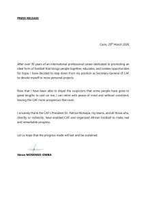 His time at CAF was marked by both progress and controversy, including earlier allegations of financial misconduct that were later dropped by Swiss authorities. The resignation signals a period of transition for African football as the organisation navigates governance reforms and prepares for major upcoming competitions.