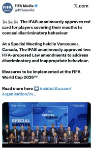 Breaking: IFAB Approves Red Card for Mouth-Covering to Hide Discrimination​​​​​​​​​​​​​​​​​​​​​​​​​​​​​​​​​​​​​​​​​​​​​​​​​​