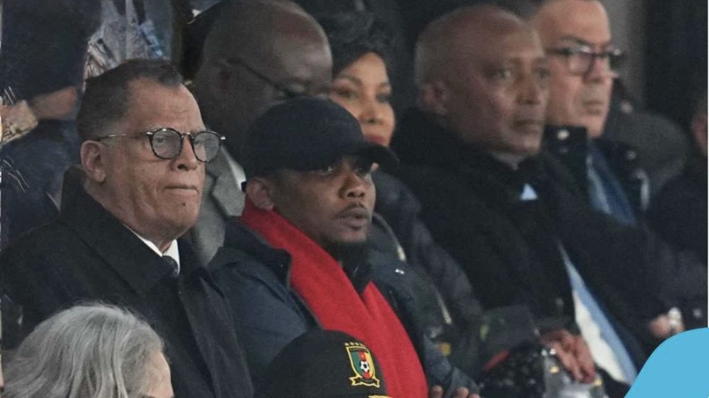 During the match, which Cameroon lost 2-0, Eto’o — seated in the VIP/official stand alongside Moroccan Football Federation officials and CAF president Patrice Motsepe — was observed displaying visible frustration, including angry gestures directed toward his Moroccan counterpart Fouzi Lekjaa amid contested refereeing decisions, such as a denied penalty appeal for Cameroon.