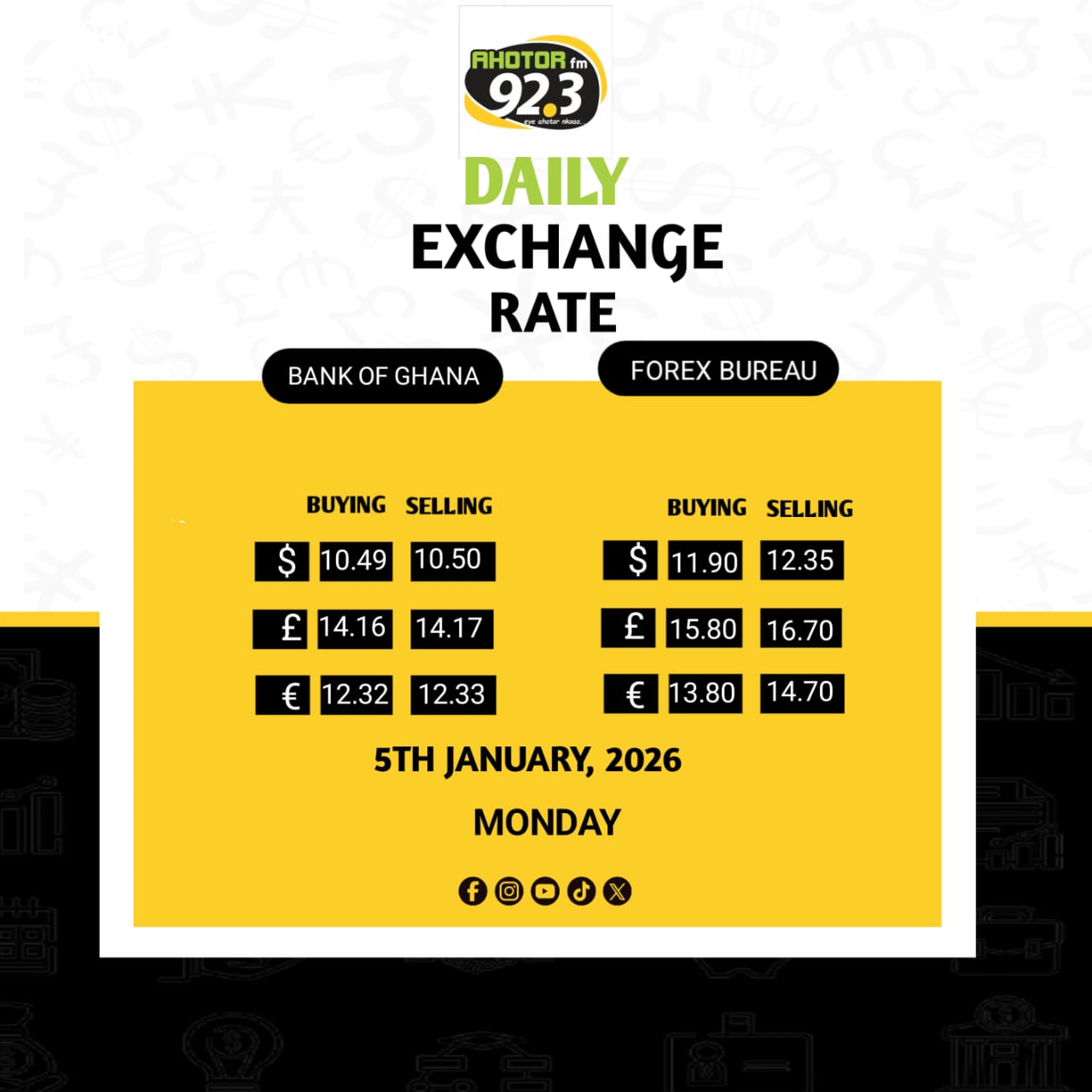 As of Monday, January 5, 2026, the Bank of Ghana reports the cedi trading at GH₵10.50 to the US dollar.