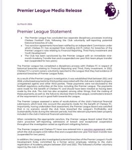 Chelsea have been fined £10.75 million by the Premier League following an investigation into historical breaches of league rules, AhotorSports have sighted.