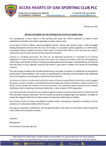 Accra Hearts of Oak Sporting Club PLC have released an official statement addressing what the club describes as recent publications and public commentary concerning forward Hamza Issah.