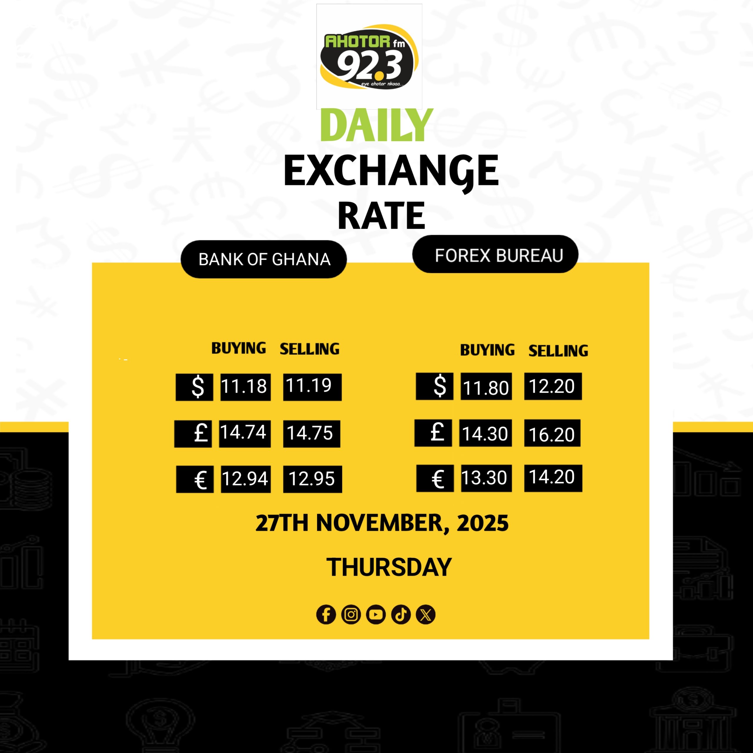 Ghana’s local currency, the cedi, is trading at GH₵11.19 against major currencies, notably the US dollar on the interbank market as of Thursday, November 27 ,2025.