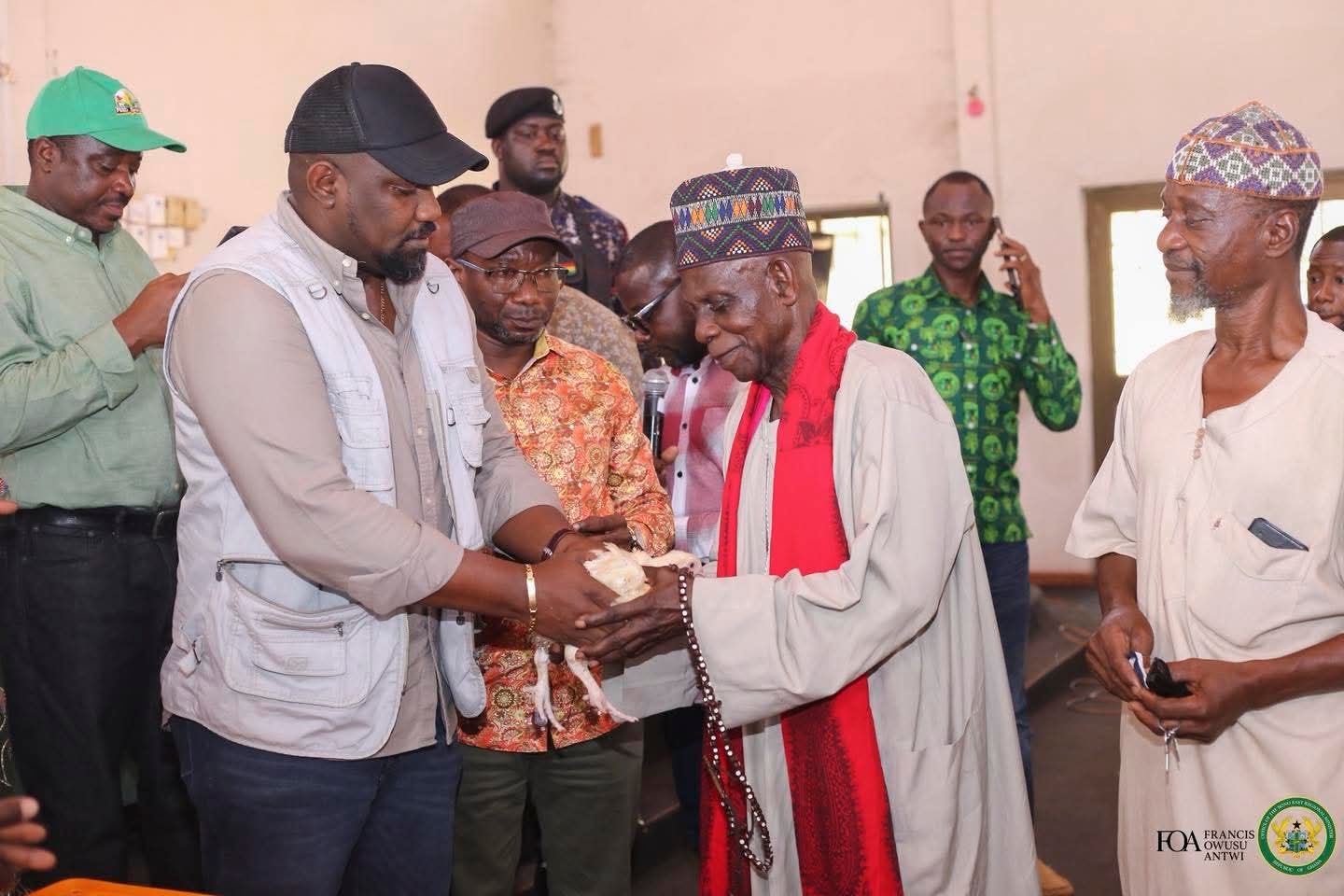 Ghanaian actor-turned-politician John Dumelo is once again making headlines—but this time, it’s all about empowering farmers. As part of the government’s Nkokonkitinkiti program, Dumelo is currently in the Bono East region, overseeing the distribution of 110,000 chicks across the region’s 11 constituencies.