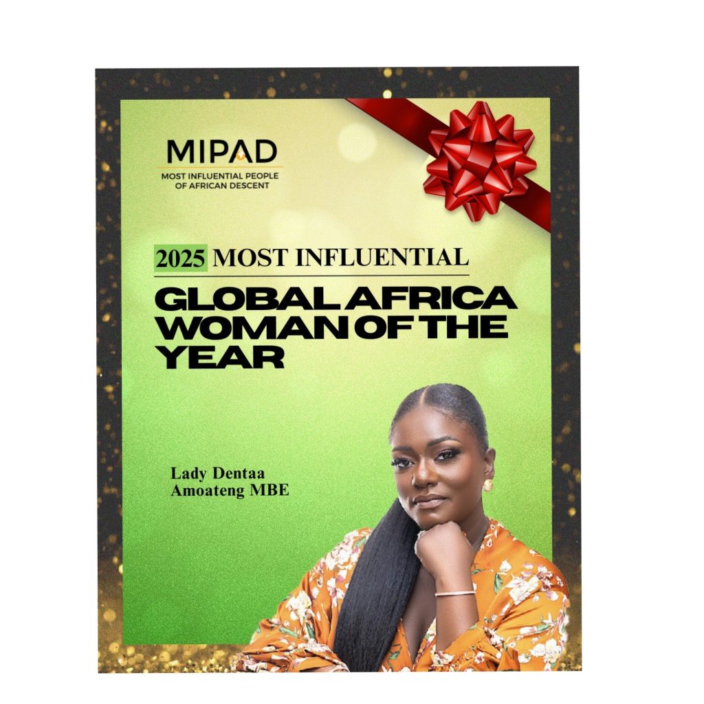 Ghanaian media entrepreneur, philanthropist, and founder of the GUBA Awards, Lady Dentaa Amoateng, has been named 2025 Most Influential Global Africa Woman of the Year by the prestigious MIPAD100.