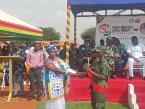 In the bustling Krowor Municipal Assembly at Nungua, the celebrations unfolded at the expansive Nungua Presby Park affectionately known as Nungua Town Park under clear skies and resounding cheers. The event brought an impressive gathering of government officials, including Municipal Chief Executive Hon. Ing. Paul Afotey Quaye, the Director of Education, and the District Police Commander, alongside revered nananom (traditional leaders), distinguished dignitaries, and thousands of enthusiastic citizens. Patriotic songs echoed through the air, flags fluttered proudly.