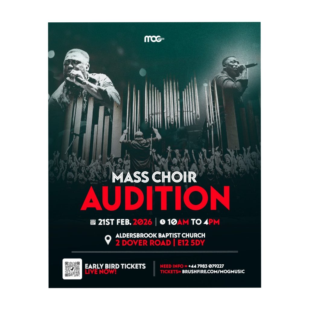 In a public call shared with fans, MOG Music revealed plans to raise a powerful mass choir to minister at the highly anticipated event. Giving glory to God, he invited singers across the UK who feel called to be part of the moment to register through an online form and step forward in faith and unity.