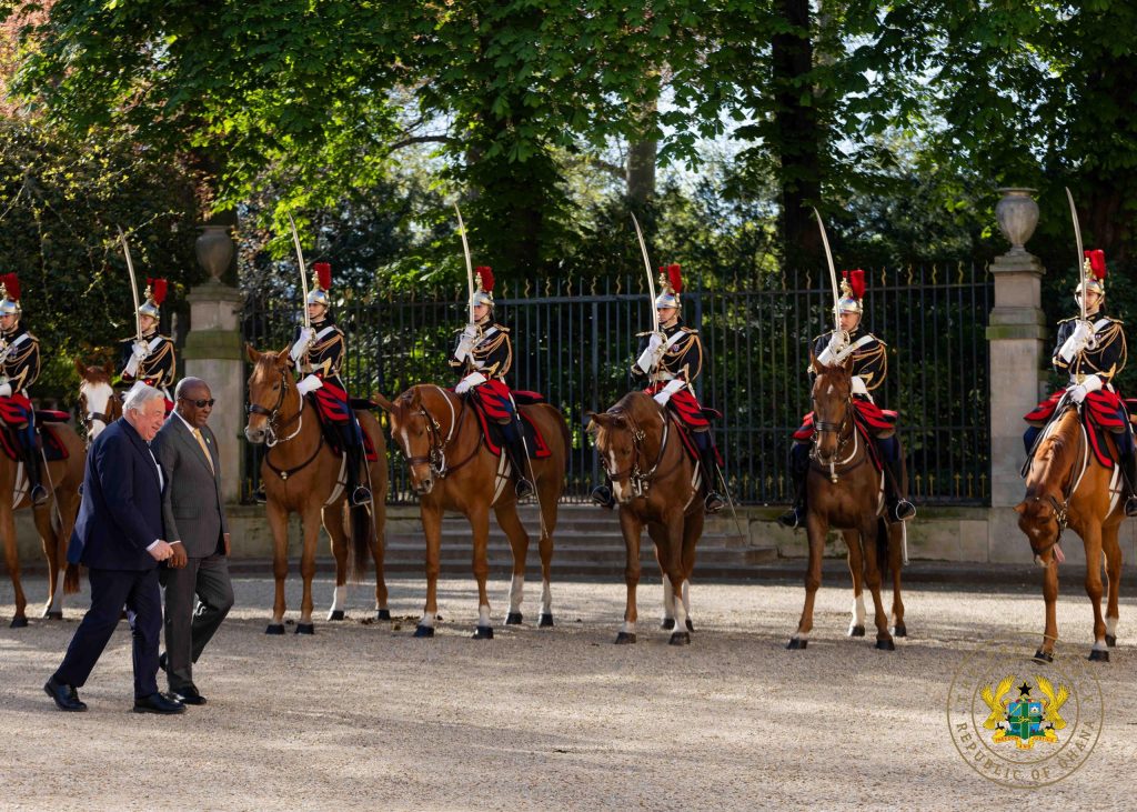 The Ghanaian leader was accorded a ceremonial military welcome ahead of the bilateral discussions, underscoring the strong diplomatic ties between Ghana and France.