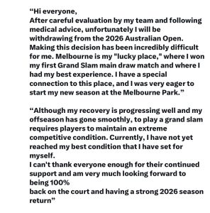 In a heartfelt statement shared on Instagram, Zheng expressed the emotional weight of the choice, noting how Melbourne holds a special place in her career as her “lucky place”—the site of her first Grand Slam main-draw victory and her greatest result to date with that 2024 runner-up finish.